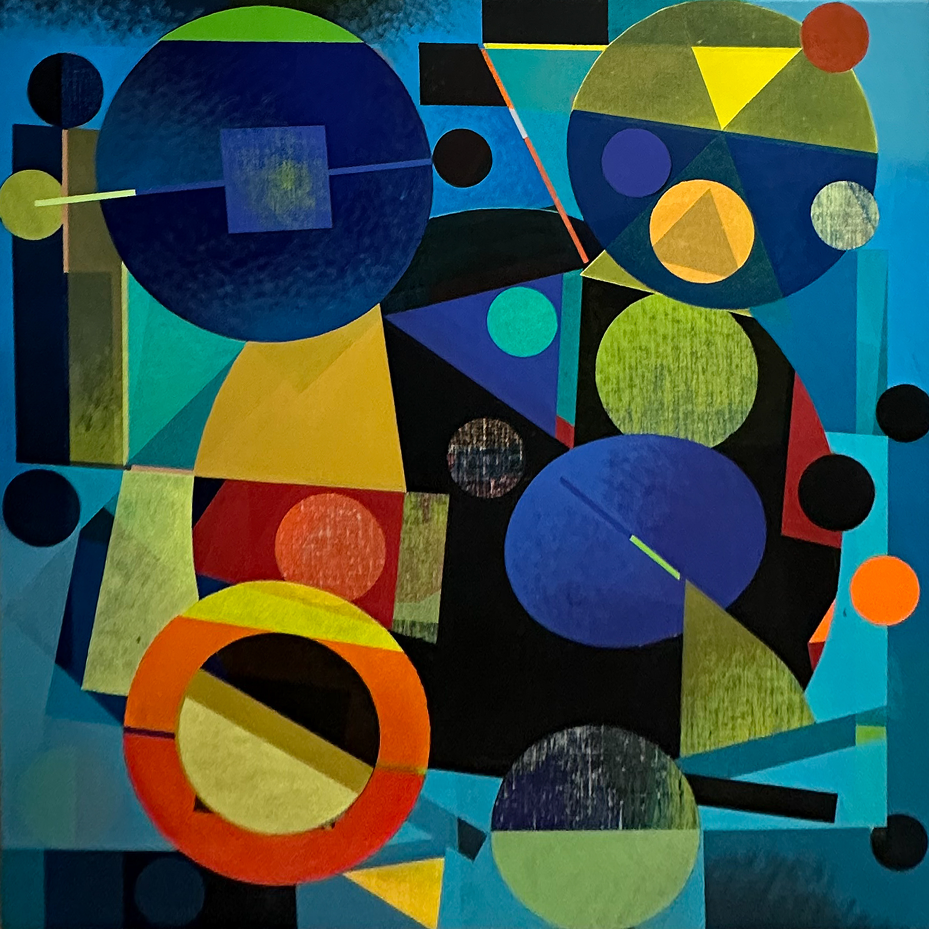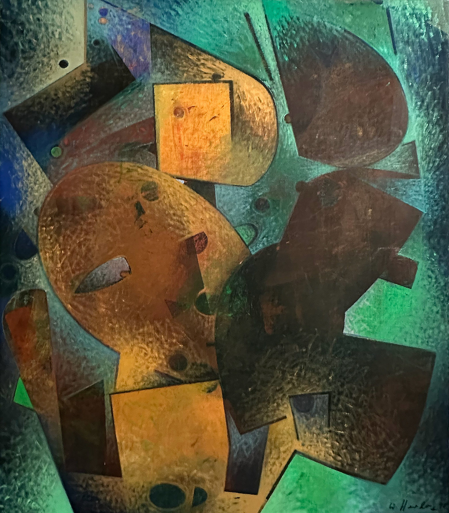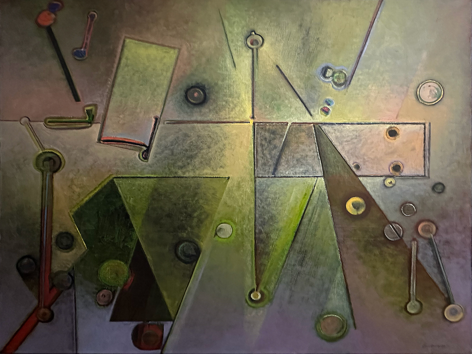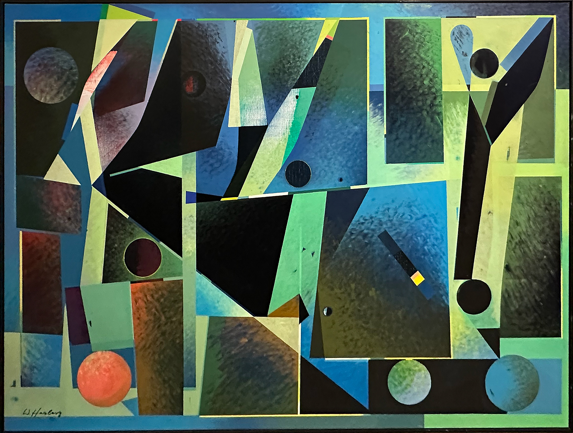 Sa peinture s’organise alors autour de cercles, carrés, rectangles, arcs de cercle et signes, qui structurent la surface. Herzberg explique que cette attirance pour la géométrie vient « par curiosité », mais aussi de sa formation de graphiste et d’artisan d’art. Il se décrit volontiers comme un « Méditerranéen de Silésie », formule qui résume son goût pour les couleurs vives autant que sa nature disciplinée.
