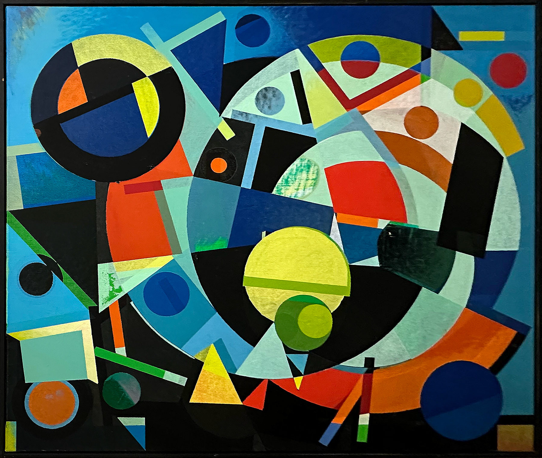 Les grandes toiles qui le font connaître en Suisse romande sont des compositions géométriques très construites, où ronds, triangles, carrés, demi-lunes et barres verticales s’imbriquent dans des structures complexes. Le critique Pierre Jeanneret décrira un peintre qui « fait chanter la géométrie », tant la couleur y joue un rôle musical : accords vifs, passages plus sourds, nuances qui donnent aux tableaux une présence à la fois dynamique et calme.