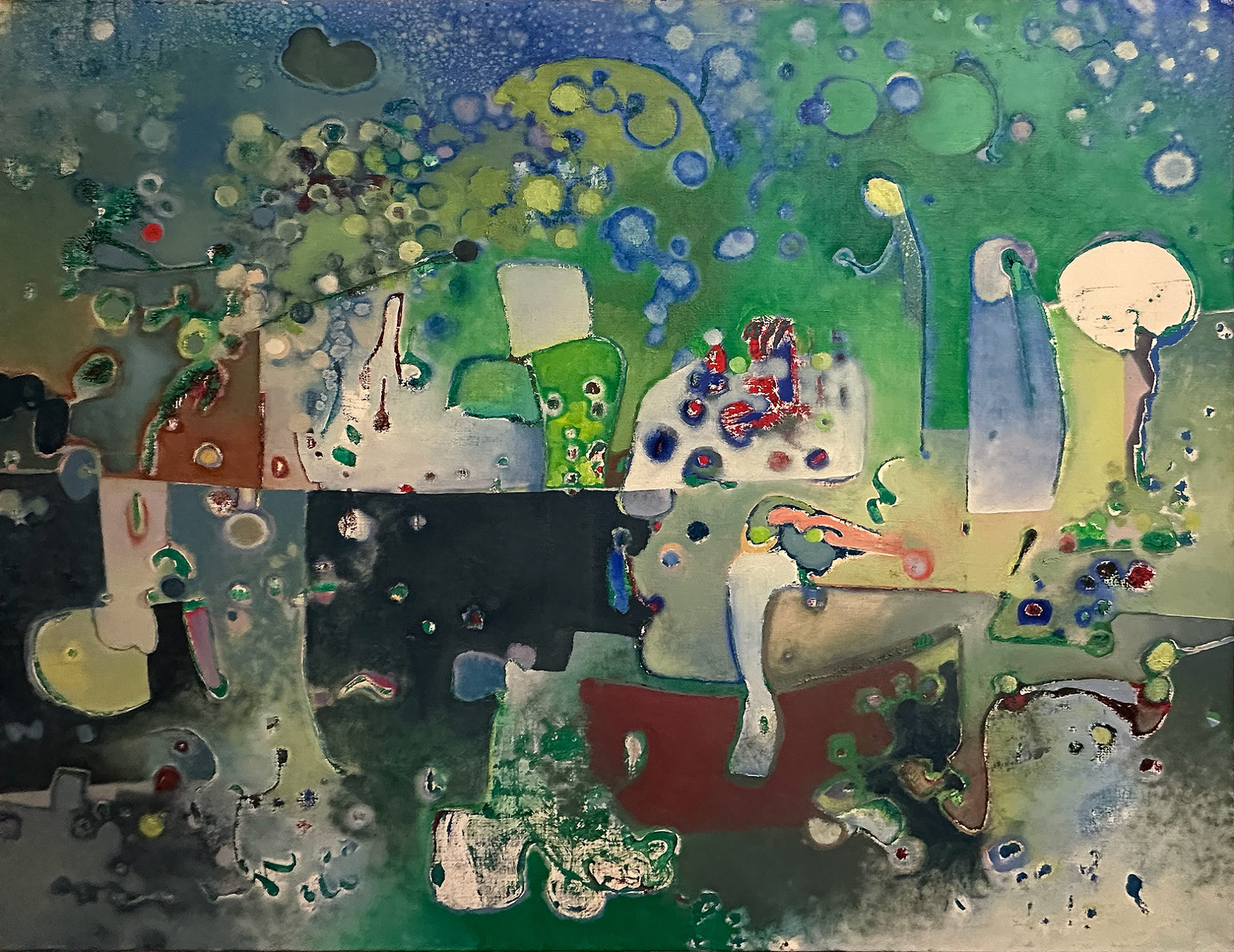Les débuts de Herzberg se font dans le paysage : il croque à l’aquarelle sur le motif, puis reprend ses vues à l’huile à l’atelier.[1] Peu à peu, ce cadre lui semble trop contraignant. Il raconte qu’« en peignant des paysages, je sentais bien que j’ allais vers l’abstrait » : la ligne d’horizon disparaît, les détails se simplifient, et le tableau devient un terrain d’expérimentation pour les formes et les couleurs.